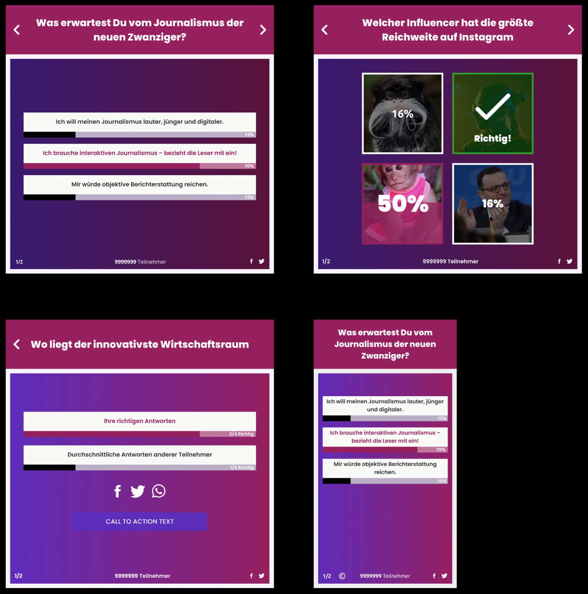 Umfragetools für Redaktionen – Produktarchitektur, UI & Brand-Themes, Account Management. Whitelabel-Lösung mit Theming für Publikationen, Brands und Partner der Axel Springer SE.