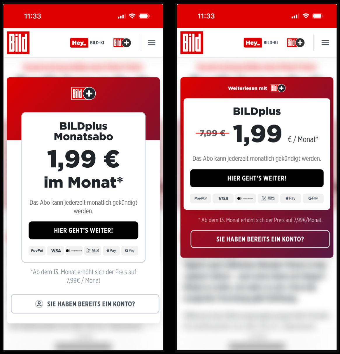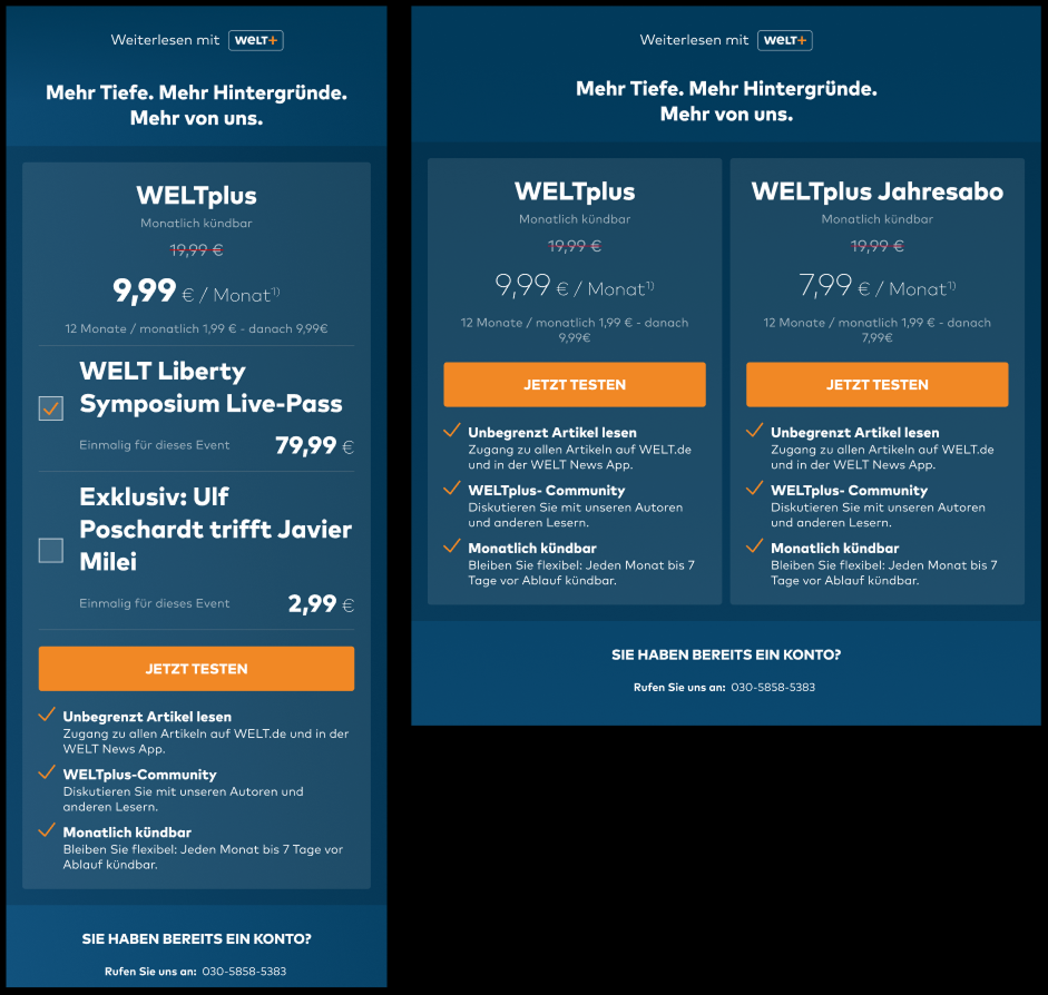 Paywalls für BILD.de und WELT.de – Product Design, A/B-Testing, User-Tests und -Interviews. Whitelabel-Lösung für Publikationen der Axel Springer SE.